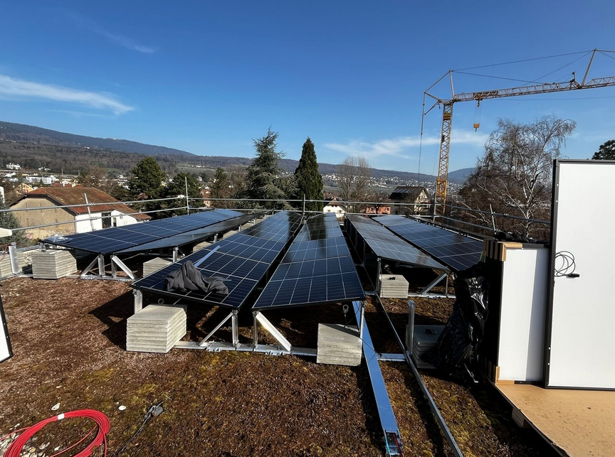 Comme mentionné lors de notre dernière assemblée générale en 2025, il a été décidé de procéder à la construction de deux installations solaires à Colombier, dans un premier temps sur le site du bâtiment existant du collège des Mûriers 4, et plus tard sur le site parascolaire des Mûriers 2 (encore en cours de construction).